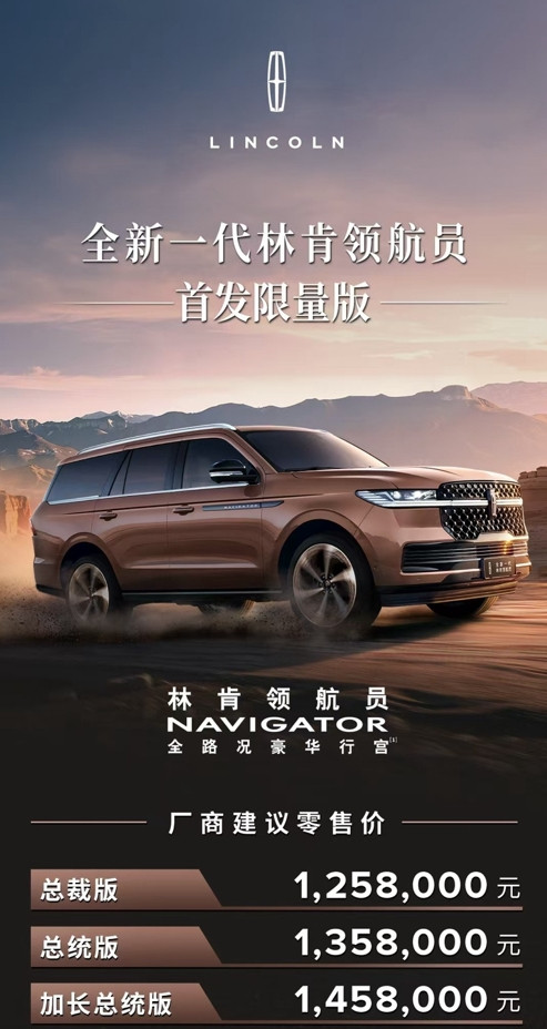 定位于全路况豪华行宫的全新一代林肯领航员,以“天生大气场、七座皆上宾、四海尽坦途”的硬核产品力,诠释了现代美式豪华的器度,为全尺寸豪华SUV细分市场树立了全新的标杆。